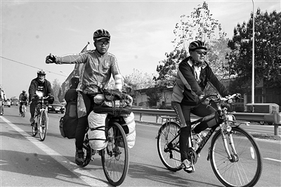 阴平中学的演讲结束后,方德永骑着他的单车再次踏上征程。因为有了各地群众的支持,他的旅程将不再孤单。 (记者 孙雪 王萍 文/图)