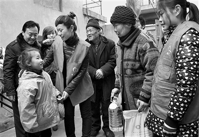 义工们将携带的米、油、面等慰问品搬进了残疾人的家里,随后会长谭军又将慰问金送到了小女孩的手中。家里的老人语重心长地教导孙女长大以后一定要成为对社会有用的人,回报社会。
