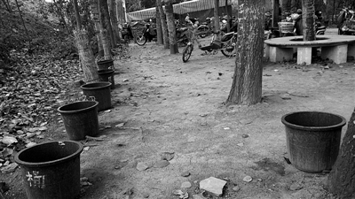 青年园内露天摆放十余个小便桶