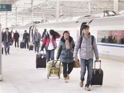 1月4日,滕州东站迎来了首批乘坐G1226次列车回家的在校大学生,该列车为唯一一列贯穿枣庄与东北的高铁,且由沈阳到枣庄全程仅需6个小时,不少在东北上学的临沂、济宁等地的学生也选择乘坐G1226在滕州东站下车,然后再转车回家。