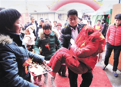 1月2日,市中区一酒店迎来了一场特殊的婚礼,上午11:18,新娘谢丽拄着双拐在新郎宋涛的搀扶下,伴随着喜庆的鞭炮声,步入了婚姻的殿堂。