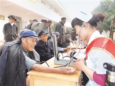 进入冬季以来,峄城区阴平镇积极开展“暖冬行动 关爱老人”活动,从镇卫生院抽调10名临床技术骨干成立工作组,携带心电图机、血压计等设备来到敬老院,为这里的孤寡老人进行健康查体。并开设健康教育大课堂,提供健康咨询等服务,为老人逐一建立了《健康档案》。同时,还免费发放价值600多元的药品,受到群众一致好评。 (记者 孔浩 通讯员 苏新伟 摄)