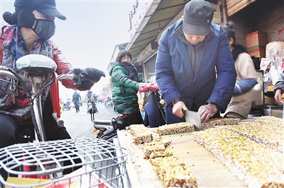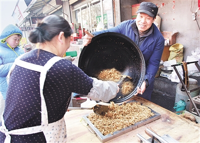 每天早晨9点多钟,杨其全的摊点前便挤满了顾客,那一锅锅现做现卖的蔗糖点心,还没有凉透就被抢购一空。杨其全说,越是这样,他越得把好质量关,芝麻、核桃、花生、冰糖等每一种配料他都亲自去进货,而且买质量最好价格最高的那种。