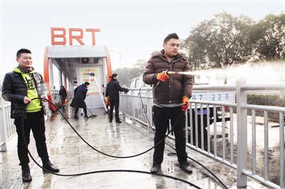 春运大幕拉开后,为给节日出行的市民提供清洁的乘车环境,近日,市公交部门对九条线路的130座BRT站台进行集中保洁维护,让市民舒心出行。