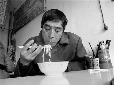 午休是张成海最惬意的时候。在福泉小区的一家面馆里,他要了一碗鸡丝面。热气腾腾的面条上来后,他吃得津津有味。闲聊中,张师傅说:“2010年,平时身体很好的老伴突发疾病,到医院一查,已是胆管癌晚期。当时去了好几家医院,最后钱都花光了病也没治好。从发病到去世,一共就3个月的时间,她也没受太多罪,唉……”一声叹息后,张师傅埋头吃起了面。“闺女说让我去南京跟她住,我不想去,觉得哪儿都不如自己的家好。”张师傅说。