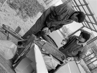 “干这活儿最重要的就是心细、认真、有耐心,不认真肯定干不好。”只见张师傅先用水除去玻璃上的灰尘,擦净边框,后用玻璃刮刮去水分,最后再用干毛巾擦干表面的水渍。看到玻璃框槽里还有些灰尘,他赶紧用抹布擦拭干净。当天室外温度达到-5℃,站在四处通风的走廊上,记者感到阵阵寒意,可衣着单薄的张师傅丝毫感觉不到,他卖力地擦拭着重复着,不知疲倦……