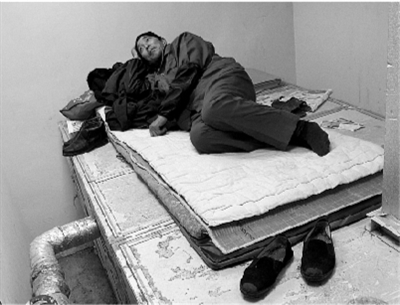 午饭后,张成海回到“休息室”。说是休息室,其实不过是放置组合式空调机组的房间。躺在地铺上,张师傅拿起儿媳给买的收音机,听着优美的旋律,稍稍缓解一下疲惫与寂寞。