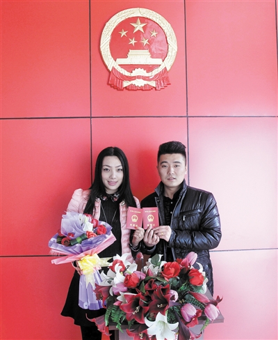 情人节当日,台儿庄区婚姻登记处共办理结婚登记107对,比去年情人节当日增加了5%。