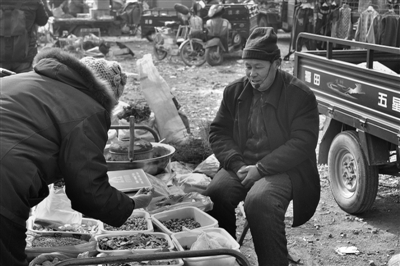 每逢阴历的四、七、九市中区齐村镇逢大集,人们总能见到一位60岁左右,戴着麦克风,边唱小调边卖调料、中草药的男子,他就是苏兴海,一位市场上的歌者。
