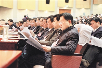 昨日,新城会展中心内国歌嘹亮,我市十五届人大三次会议在此隆重开幕。会上,代表们全神贯注地听取了市长张术平代表市政府所作的《政府工作报告》和市法院、市检察院的“两院”工作报告。 (记者 孙慧英 孙明春 摄)
