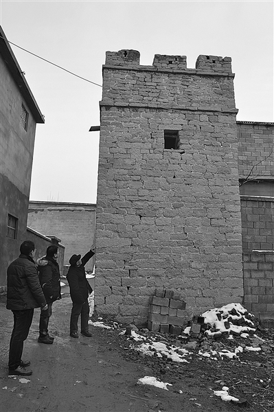 新城附近的来泉庄村内有一座十几米高的炮楼,是李姓先人一百多年前所建。当年村里共有13座高大炮楼,主要用于防土匪保家护院,目前仅剩下这一座保存完好。据李姓后人介绍,其祖父那一代在邹坞给大户人家打工,后来攒钱建起了这座炮楼。炮楼全部用青石垒砌,非常坚固,多少年来他们家一直使用没舍得拆除。现在来泉庄成了城中村,这座炮楼也成了城市里的一道风景,经常有人慕名前来参观。 (记者 孔浩 摄)
