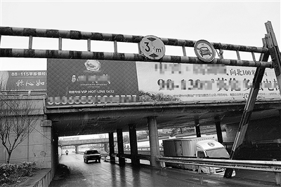 不过记者在现场发现,桥下主道车辆固然是络绎不绝,而桥下两旁的辅道上车辆也是一辆接一辆。记者仅观察了十分钟,便有五辆汽车从辅道通过。记者在两边的辅道上面均发现了3.3米的限高栏,而限高栏上记者更是看到有一个机动车禁止通行的标志悬挂在限高栏的最顶端,虽然标志牌有些陈旧,但仍颇为醒目。