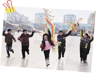 23日,小朋友们在光明广场快乐地放风筝。随着气温的不断升高,不少市民来到户外,享受阳光、放风筝迎接春天的到来。 (记者 孙明春 摄)