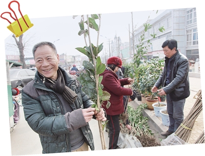 24日,利民市场上,一位男士高兴地购买了几棵金桂花苗。他说现在正是栽植花、树好时节,趁此机会要多买些苗木美化环境。 (记者 孙慧英 摄)