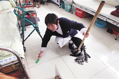 一天到晚,日复一日,李星兰每天都觉得时间过的好快,她说,从一开始不好意思告诉别人自己从事的工作,到现在,提起自己的工作不但理直气壮,而且觉得很自豪。因为,这份充满爱心、细心、耐心的工作,不是所有人都能胜任的,她在护工队伍里找到了乐趣。 (记者 孙慧英 文/图)
