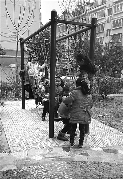 气温渐高,不少孩子走出“温室”,小区里的健身区域成了他们玩耍的好去处,很多小孩子把这里当成嬉戏玩耍的游乐场,健身器材并非玩具,孩子们玩耍时一定要小心。 (记者 张莉萍 摄)