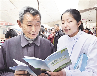 3月24日,山亭区医务人员走上街头向群众讲解结核病防治知识。当日是第19个世界防治结核病日,山亭区卫生部门开展“你我共同参与,依法防控结核”主题宣传活动。 (特约记者 李宗宪 通讯员 刘明 摄)