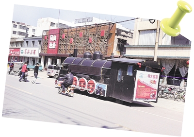 近日,一“火车头”在振兴路上行驶。其实这个火车头是由机动车改装而成,是某商家做宣传的一辆广告车。不过,这个“火车头”行驶在路上的确引来不少市民驻足观看,有市民调侃道:“火车头高调出轨了。”