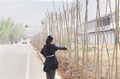 晚报讯 (记者 王震 王萍 摄影报道)4月1日,山亭区夏岭村一村民拨打本报热线反映,门口绿化用的小树栽种的过于密集,密密麻麻的都快变成“防护网”了。记者随后赶到现场,看到小树的密集程度实在是惊人,而且“防护网”从夏岭村一直延伸到水泉镇,全长近十公里。记者从附近村民口中得知,小树是最近一两天才种上的,还没有浇水,也不知为何这样种树。