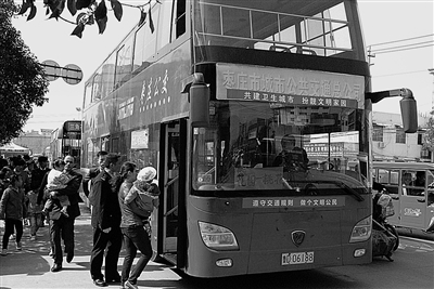 清明节当天,市公交总公司共投放开往青檀寺及万亩榴园风景区的公交线路750个班次,较平时增加30%,安全运送乘客3.2万人次,创历史新高。该公司开往青檀寺及万亩榴园风景区的公交1路线由原44个台班,增加到48个台班;新增加2台双层大巴车、4台大客车;21路线由原来24个台班,增加到28个台班,同时将该线路调整以方便乘客赴万亩榴园风景区游玩。 (记者 岳娜 摄)