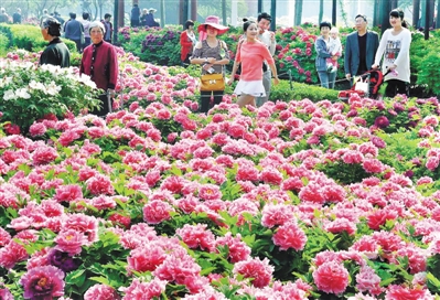 | 昨日,几名游客走进洛阳市一家公园观赏牡丹。随着天气渐暖,在“牡丹花都”河南省洛阳市,涵盖九大色系的1000多个品种的各色牡丹陆续进入了盛花期,市内的十几个牡丹观赏园吸引大批游人前去参观。 (新华社) |