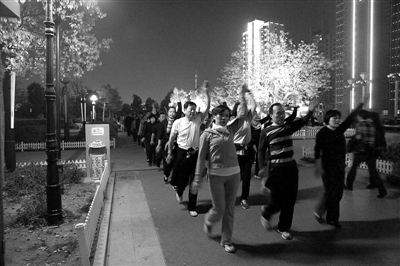 在市中区东湖公园,每天晚上7点到9点左右,大约有300多人跟着音乐节奏疾步而行,这支暴走队伍从年青人到老年人,各个年龄段都有,从最初的夫妻俩到现在几百人,队伍逐年壮大。