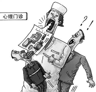 近日,重庆一位家长陈利(化名)致电投诉:4月2日他带孩子到主城一家三甲医院心理门诊就诊,花了近百元挂专家咨询号后,从诊断到开药,医生与他和孩子的交流没超过10句话,药费却有近千元。陈利说对医生这种诊病方式失望,因为在他看来,心理门诊不该只有冷漠的医生与一堆冰冷的药。(《重庆晚报》4月14日)