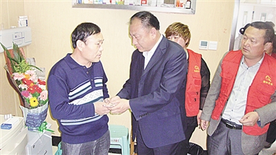 近日,滕州义工与爱心企业人士褚东升和道德传统协会的爱心人士到滕州市人民医院为患白血病的男孩宋传增捐款。据了解,宋传增现年8岁,因患白血病入院治疗,医疗费用无着落。