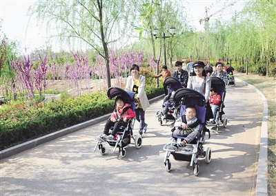 近日,山亭区残疾人康复托养综合服务中心的五名医护人员,带领着在这里进行康复治疗的部分脑瘫患儿走出病房,到当地的紫云湖公园游玩,感受春天的气息。 (特约记者 李宗宪 摄)