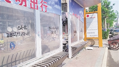 近日,记者在途经薛城区北批市场时发现,该市场的公交站台内一片混乱:写有“文明出行”的广告横幅已经被撕去了大半,裸露的部位被“办证”、“开锁”等小广告所占据,在此等车的乘客纷纷表示,“花脸”的站台实在太影响城市形象。