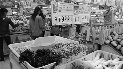 3月初,香椿上市价格达到每斤十几元甚至二十几元,许多市民打消了尝鲜的念头。最近,本地的头茬香椿价格开始下降,记者21日在市中区某大型超市看到香椿每斤降到9元,但降价并没有引来顾客的哄抢。 (记者 董艳 摄)