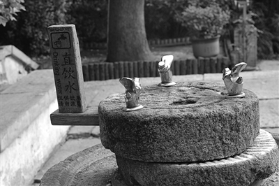 此处直饮水供应处的造型比较特别,是设在一个圆磨盘上,旁边还有一个“仅供饮用 请勿浪费”的提示牌。但是,记者按压水龙头时却没有水出来。并且,磨盘周围也十分干燥,不像是有水的样子。记者观察期间,不少人经过此处时都会过来按压几下,看看能不能按出水来。
