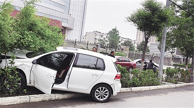 4月26日下午,记者途经市中区文化西路时,看到一辆白色轿车,不知为何竟然冲到了路边的花池中,导致车体受损,引来许多市民围观。一位市民说,城区内车多人多,开车还是悠着点为好。