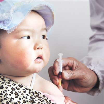 4月25日,山亭区徐庄镇中心卫生院,一名小宝宝在接种疫苗。当日是我国第29个儿童预防接种宣传日,今年的宣传主题是“接种疫苗,保障健康”。 (特约记者李宗宪