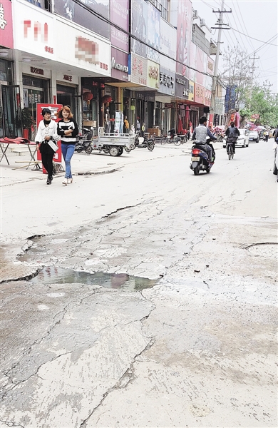 晚报讯 (记者 李帅 摄影报道)4月25日,家住峄城区中心街的褚先生拨打本报热线反映,中心街中段位置有一处路面破损,污水顺着破碎的路面溢了出来,在路中间形成了一个小水汪,臭气熏天,难以通行,路两边店铺的生意也受到了一定的影响。