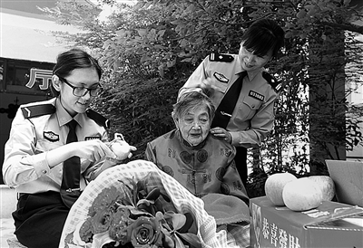 多年来,每逢节假日,市中区的民警都会来到市中区社会福利中心看望老人。5月9日上午,民警带着鲜花和水果等礼物来看望老人,陪老人聊天、散步,还为老人梳头,“警察儿女”们让老人感受到了温暖和关心。