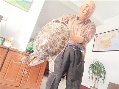 5月13日下午,台儿庄区退休干部魏恒培在京杭运河台儿庄段钓上一尾甲鱼,盖长40厘米,宽31厘米,重11斤。背际呈黑褐色,腹面、头部白里透红,背前部有白色点状突起。据长年在运河捕鱼的人讲,这么大的野生甲鱼没有百年以上是长不成的。