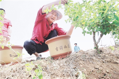 干农活的辛苦,没有磨去李兴亮的干劲,他又承包了近200亩土地,他说:“要让乡亲们看到种地付出一样的汗水产出不一样的效益来,在我的带动下,现在已有183家农户也种上了金银花。”