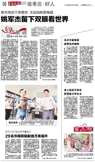 姚军杰留下双眼看世界
