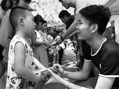 5月29日上午,枣庄学院美术学院10余位大学生走进大山深处的山亭区凫城镇崔庄小学,给这里的留守儿童送来了学习用品和节日礼物,并和这些小弟弟小妹妹们同台演出,迎接“六一”儿童节的到来。 (记者 邵士营 摄)