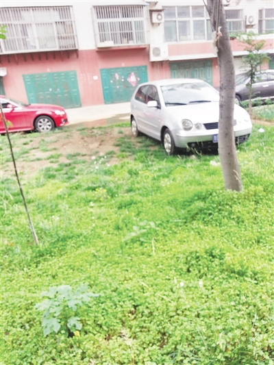 6月2日,记者来到市中区广场花园小区。由于小区内私家车较多,小区的主次干道上都密密麻麻地停满了车辆,有些车辆一半停在绿化草坪上,一半在空地上。小区2号楼和3号楼中间的草坪上,停放着一辆私家车和一辆三轮车,车轮底下的草坪已经完全被压成了“烂泥”,附近还留有深深的车轮印。草坪的最西面被一些碎石子覆盖着,有数十平方米,上面停了三辆私家车。“这些碎石子的地方就是居民私自铺设的停车位,不知道过段时间会不会用水泥硬化。”一居民称。