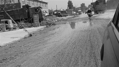 “早上上班时,雨后坑坑洼洼的西侧路面会有积水,车辆少点还好,只要躲着坑洼积水路段就好,一旦遇到车多人多的时候,就算躲,也难免会被溅上泥水。”李女士说,“下午回家的时候,虽然天还没黑,但是因为靠近东侧的路面是干燥的,来往车辆一多,就会带起一片灰蒙蒙的尘土,影响视线,所以我们每天出门都是全副武装,既躲泥水又避尘。”