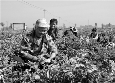 连日来,在滕州市大坞镇120亩金银花种植基地里,来自附近村庄的大叔大妈们正忙着采摘金银花。这些老年人大多是农村富余劳动力,采摘金银花成了他们增收的新途径。据悉,采收旺季基地每天可接纳300多人同时采摘,每人每天采摘10至20斤,收入40至80元不等,酬劳日清日结。采收大妈们高兴地说:“金银花成了我们老年人的‘金钱’树,我们每天都到这里来‘淘金’。”