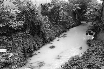 据刘先生介绍,上世纪八九十年代这条河沟清澈见底,而且河水里还有鱼虾、芦苇等水生物,水质一直很好,几乎没有污染,空气也很清新,到了夏天,这里绿树成荫、鸟语花香。“大约90年代以后,随着附近工厂的建立,及北大集农贸市场的扩大,工厂和集市上的污水都顺着学院路路北的排污河全部流到这里,所以就变成了现在乳白色的河水,而且臭味越来越大,今年臭味最大,已经让我们无法忍受了。”刘先生生气地说。