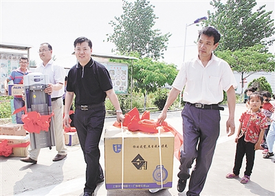 近日,市民石云来到峄城区古邵镇的八里小学,为这里的孩子捐赠直饮机、吊扇、台式电扇、笔记本等生活、学习用品,总价值万余元。