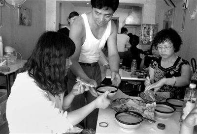 6月10日,市中区文化路铁道口西北角一家菜煎饼店里顾客盈门。这家菜煎饼店的女老板说,来她店吃菜煎饼的顾客都是对她生意的支持,为表示感谢,她每天都为顾客提供各种免费稀饭。很多顾客说:“我们就喜欢这种老板,真够意思。” (记者 孙慧英 摄)