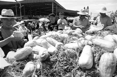 每到夏日,西瓜总是市场上水果中的“巨无霸”,但是,有些瓜农针对许多不宜吃糖分过高水果的市民,特别种植了一些脆瓜,很受市民欢迎。瞧,利民市场上,这车脆瓜多么诱人。
