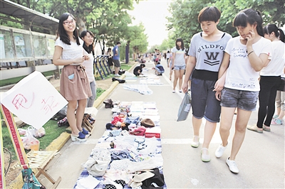 近日,枣庄学院的跳蚤市场正式开始。跟往年一样,今年所售货物以英语类及考研类书籍为主,一些首饰和衣物也夹杂其中。跳蚤市场的出现,满足了不少学生淘货的需求。 (记者 马高超 王龙飞 摄)