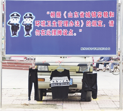 6月20日,滕州市解放西路欧罗巴风情嘉帝广场的一处城市管理宣传栏被市民当作了晾衣架。有市民说“把衣服晾在这里不太文明”。