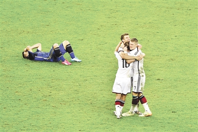 昨日,在巴西里约热内卢马拉卡纳大球场进行的2014年巴西世界杯决赛中,德国队与阿根廷队在90分钟内战成0比0平。最终通过加时赛,德国队以1比0战胜阿根廷队,获得冠军,这也是德国队第4次拿到世界杯冠军,同时也成为首支在美洲大陆夺得世界杯的欧洲球队。 (详见15版)